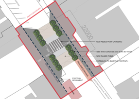 In addition to the above, a new zebra crossing will be installed in front of the AIB as provided for under the previously approved Part 8 planning (see below). Please note that this is subject to close out of the detail design and road safety audits as appropriate.